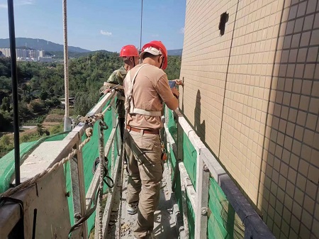碧翠苑外墻磚脫落現險情,房產公司“蜘蛛俠”立即排危保安全