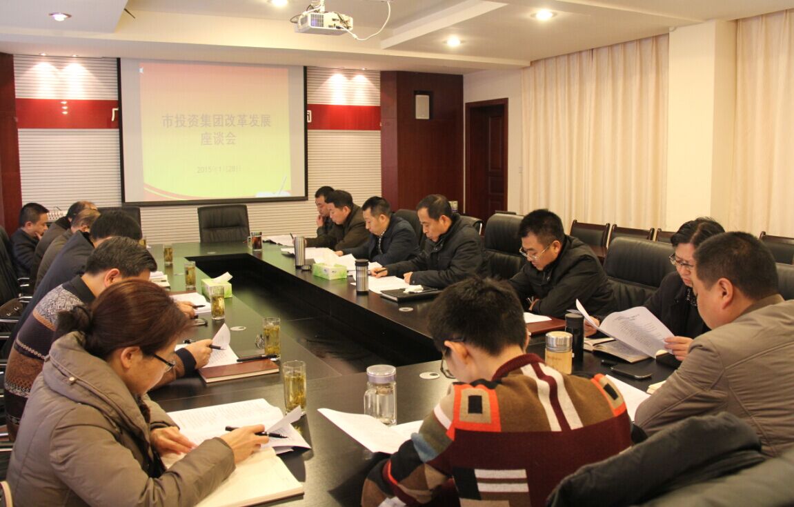 國資委萬多志副主任、張曉峰主席、劉文詩調研員、改革改組科科長陶麗筠、辦公室副主任段小雷,市投資集團全體領導班子出席座談會。